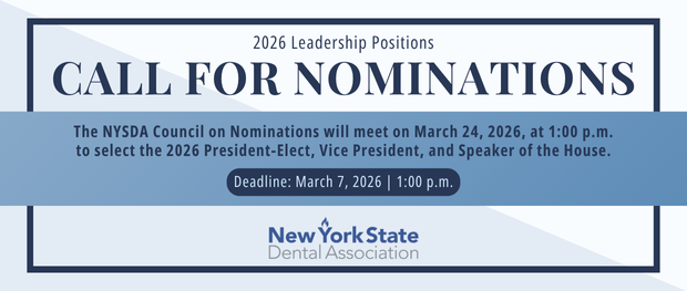 Submit candidates for NYSDA’s 2026 President-Elect, Vice President, and Speaker of the House by March 7, 2026.