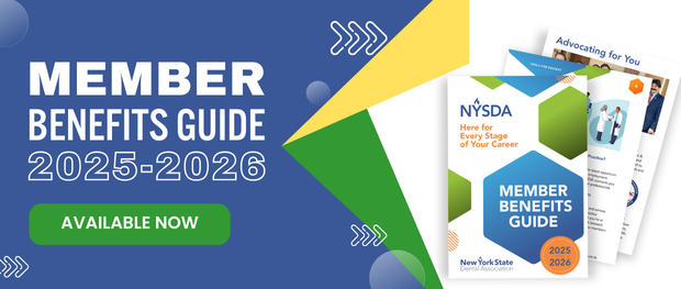Explore Your Member Benefits — The 2025/2026 Member Benefits Guide is now available! See everything NYSDA offers and get a quick overview with our At-A-Glance one-pager.